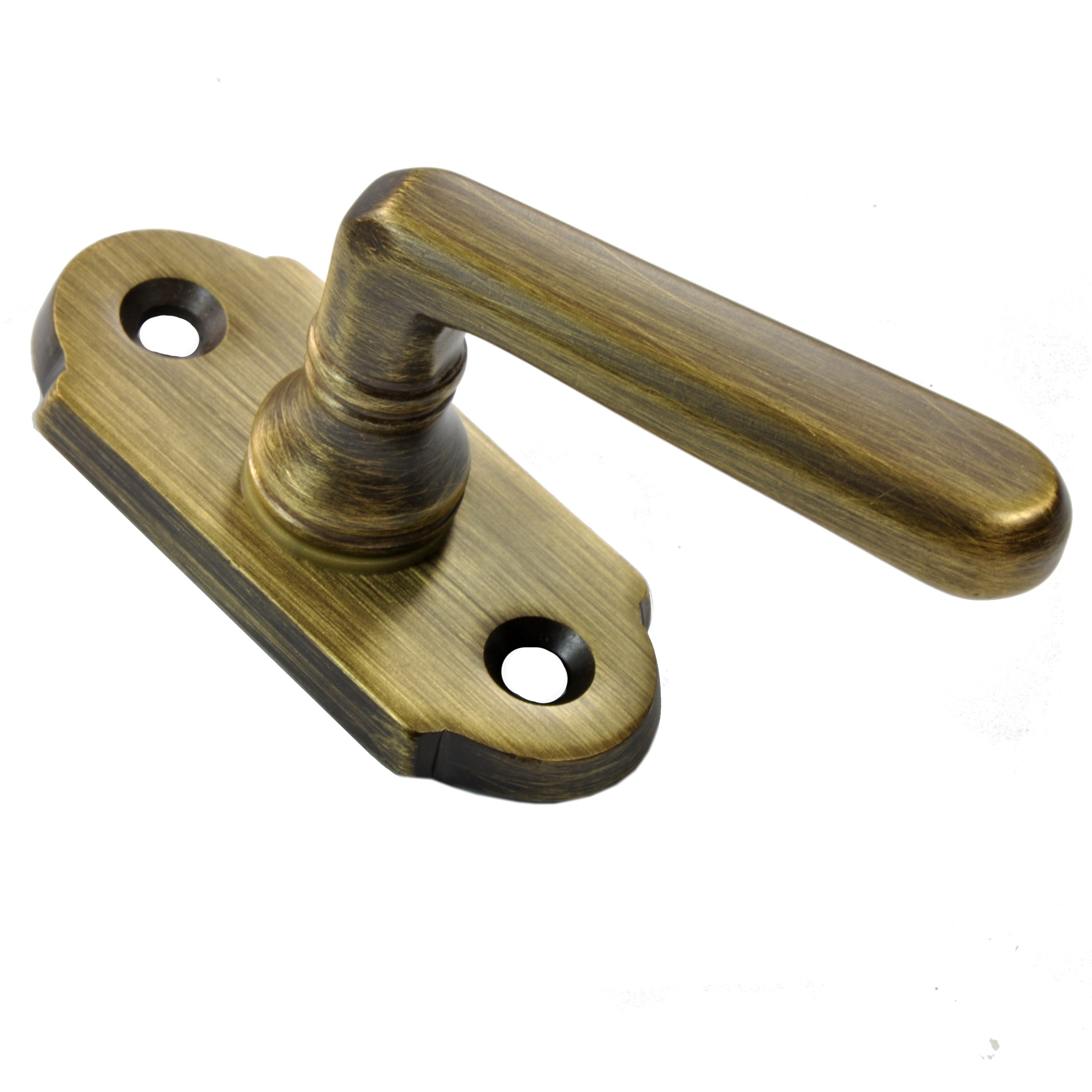 sárgaréz öntvény ablakkilincs, antikolt, lakkozott felülettel.